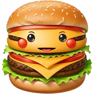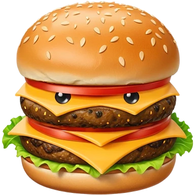 Create an image of a burger face with eyes and mouth pooping up in blue background emoji