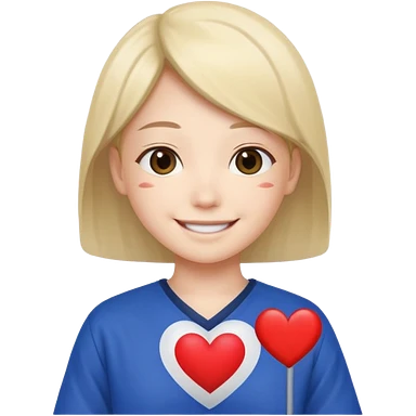 big blue eyes, pixie cut white hair, balloon that says Lala ♥️ you! emoji