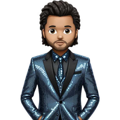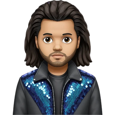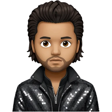 The Weeknd with long dark brown hair, dark gray sequin outfit emoji