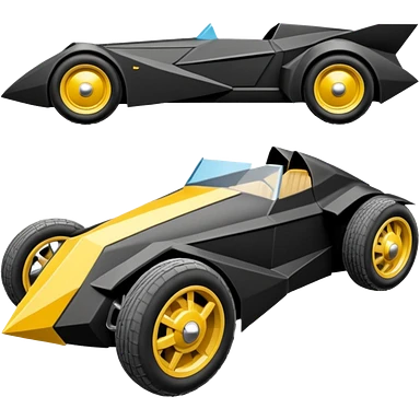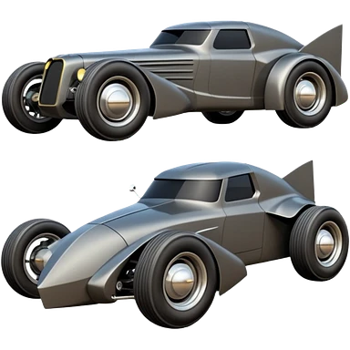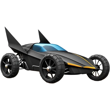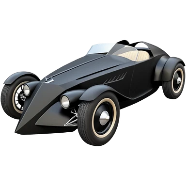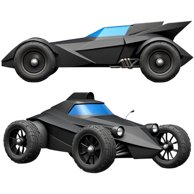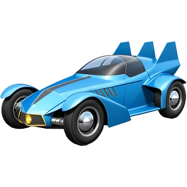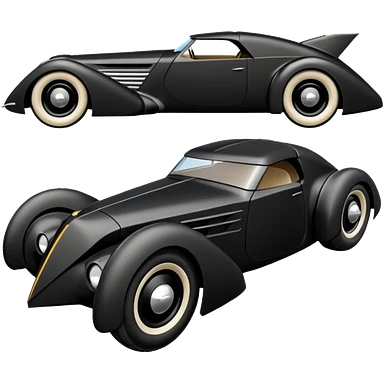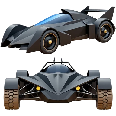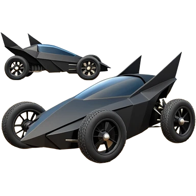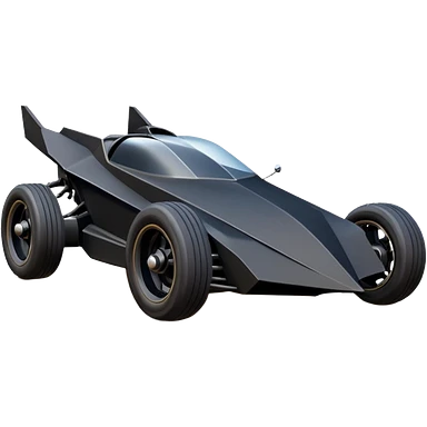 the animated series aerodynamic dark futuristic concept Batmobile loosely based on 1966 Cadillac roadster(flat long straight faceted mechanical body) winged stealthy street hot rod emoji | AI Emoji Generator