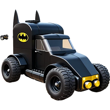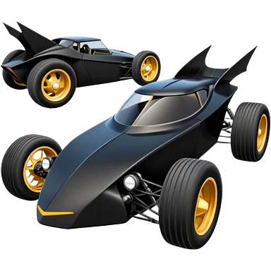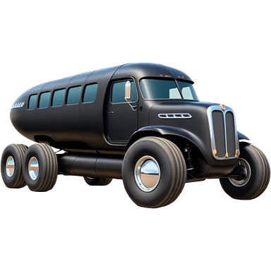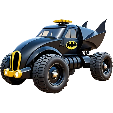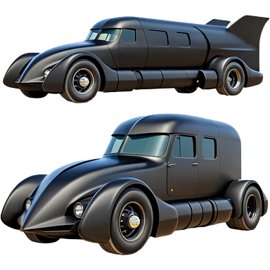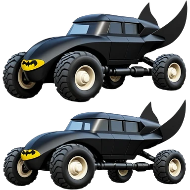 the animated series aerodynamic futuristic Batmobile loosely based on 1956 freightliner school bus (flat long straight organically-shaped mechanical roomy interior seating inside the body) stealthy town hot rod desert dirt racing rwd buggy emoji | AI Emoji Generator