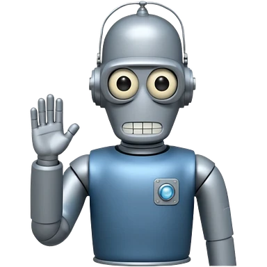 Bender from Futurama looking at the camera from back, wearing a t-shirt emoji