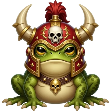 the basic bufo worry frog emoji with a khorne beserker helmet emoji | AI Emoji Generator