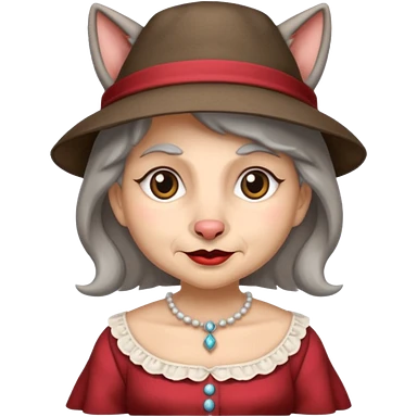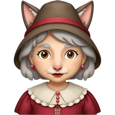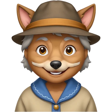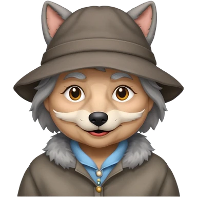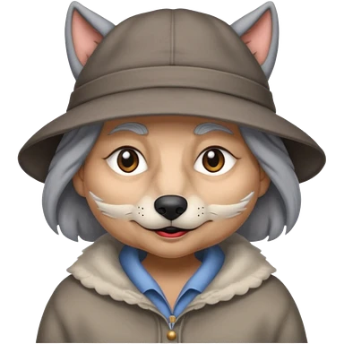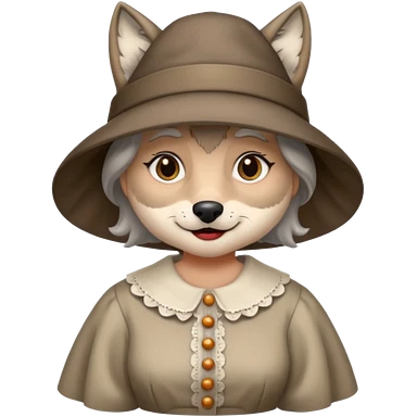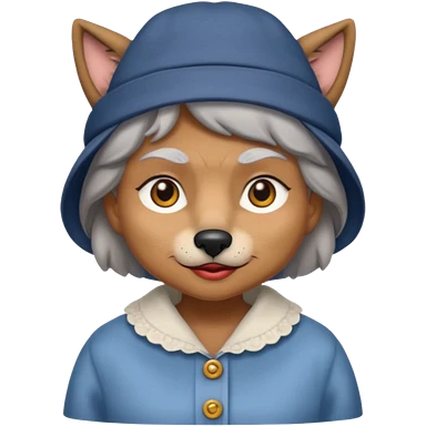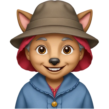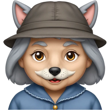 The big bad wolf is wearing Grandma's clothes and a hat, yet its face still looks like a wolf's. emoji