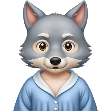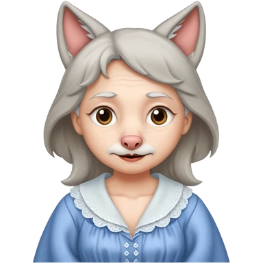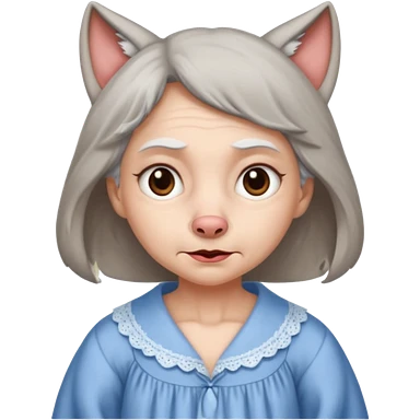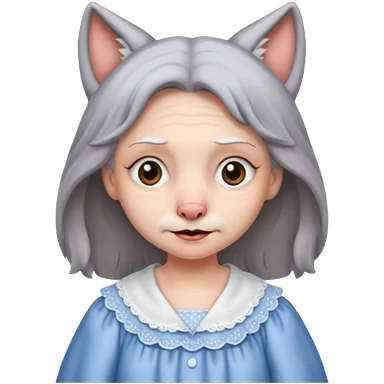 The big bad wolf is wearing Grandma's clothes, yet its face still looks like a wolf's. emoji