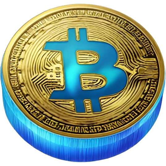 The blue gradient color coin with F alphabet, looks like bitcoin emoji | AI Emoji Generator