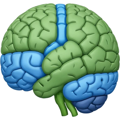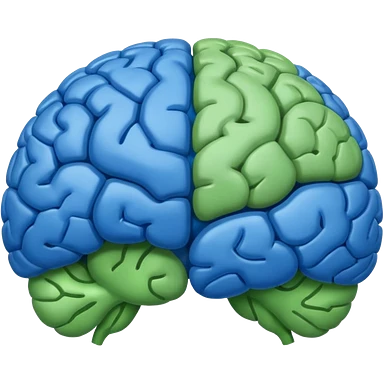 The brain has blue hemispheres and green hemispheres. emoji