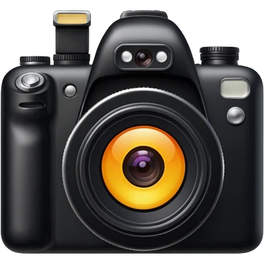 The camera features a solid black body with a shiny lens. emoji | AI Emoji Generator