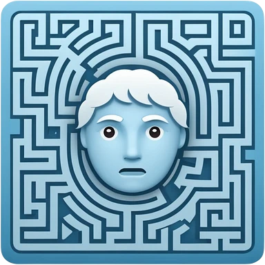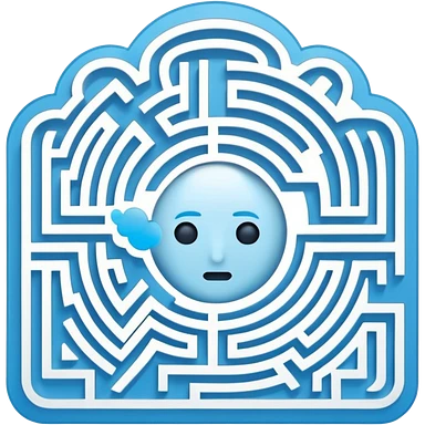 An icon of a face-down card. The card's back features a minimalist labyrinth/maze pattern in light blue on a dark blue background. The maze paths subtly connect to form the shape of a cloud in the center. Simple, geometric, for a small app icon. emoji