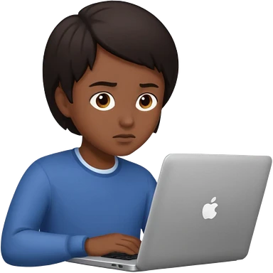 The central figure is an emoji of a person with dark hair with laptop emoji