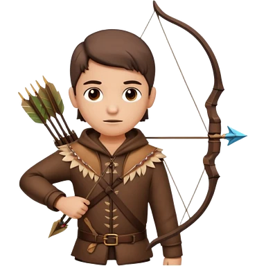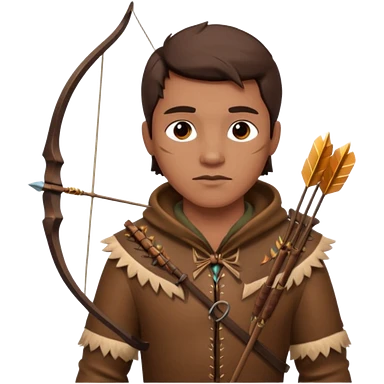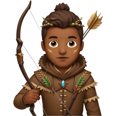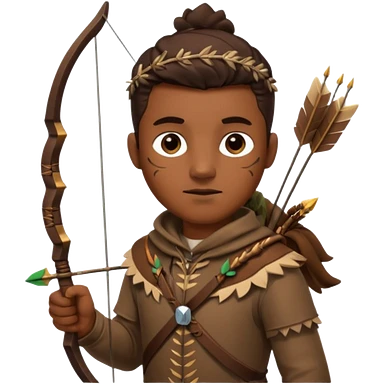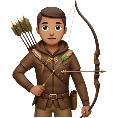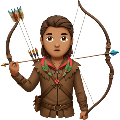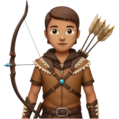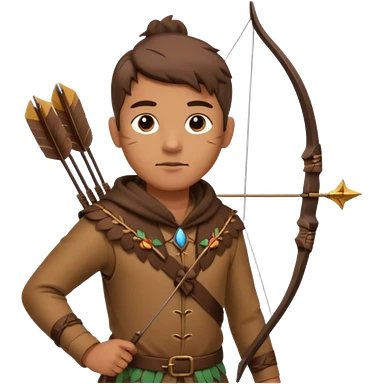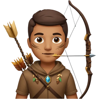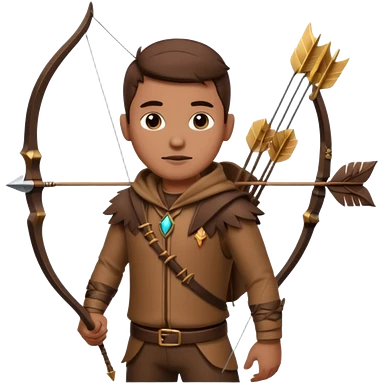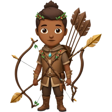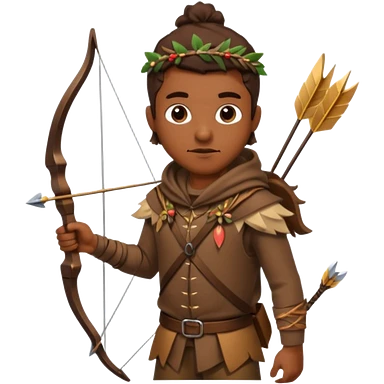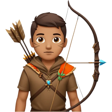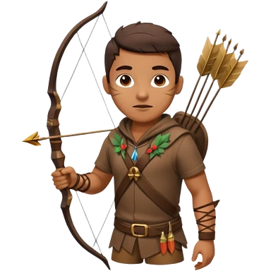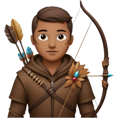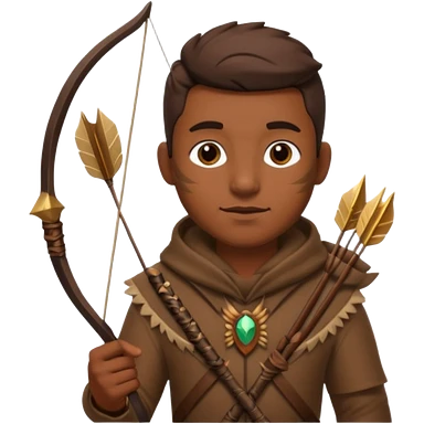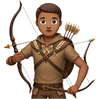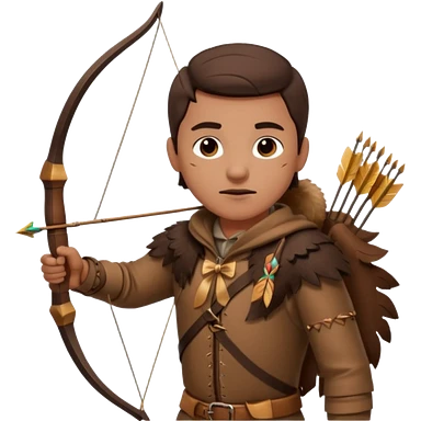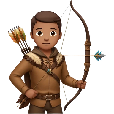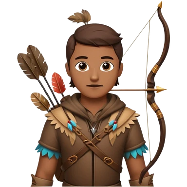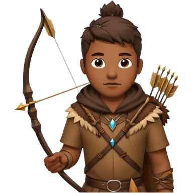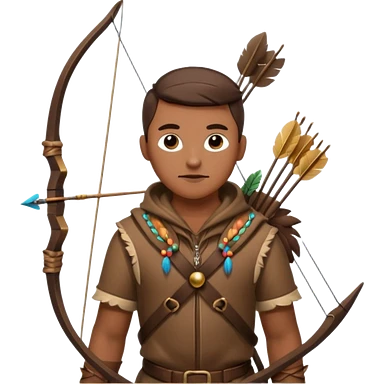 The classic hunter image with a bow and arrow on his back, dressed in brown with some animal made decorations emoji | AI Emoji Generator