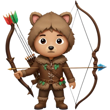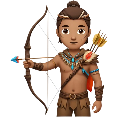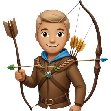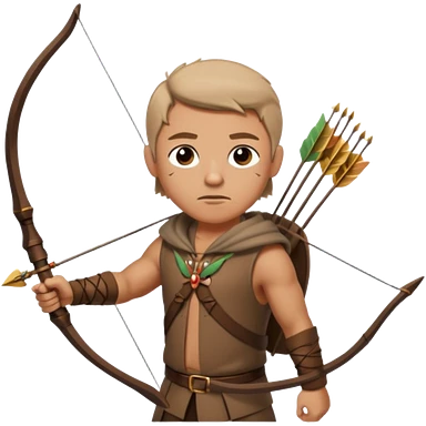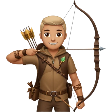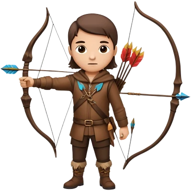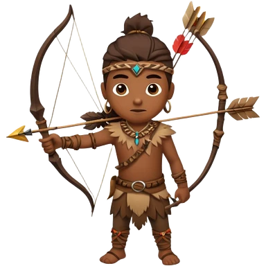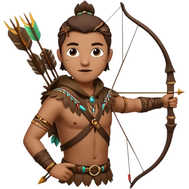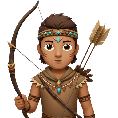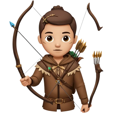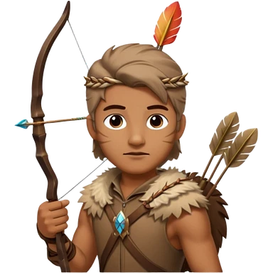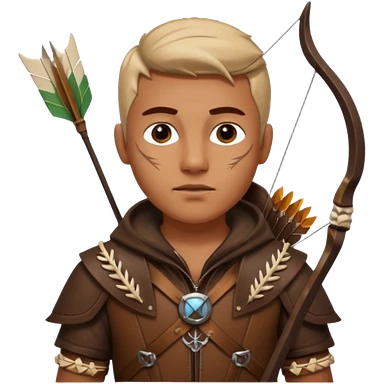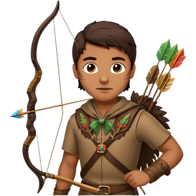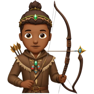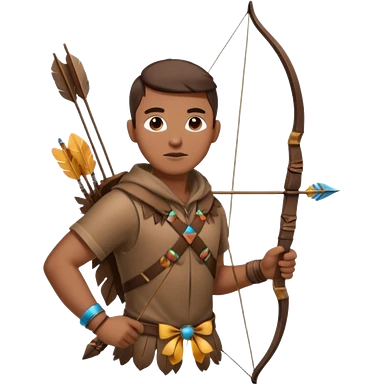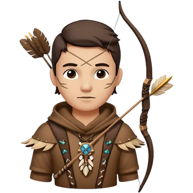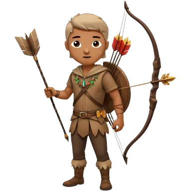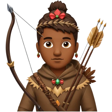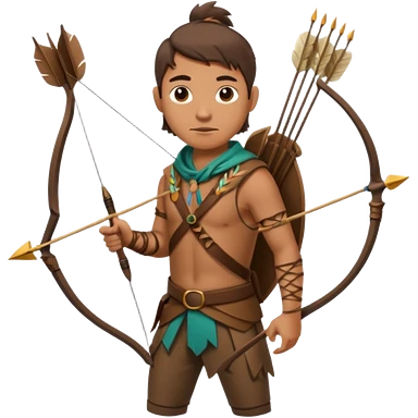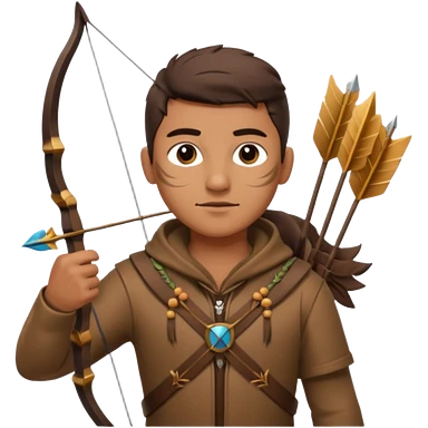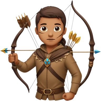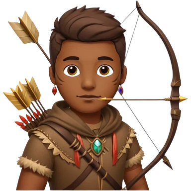 The classic hunter image with a bow and arrow on his back, dressed in brown with some animal made decorations emoji | AI Emoji Generator