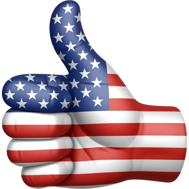 a fist with a raised thumb facing frontally, only the thumb dipped in paint and painted in the American flag emoji