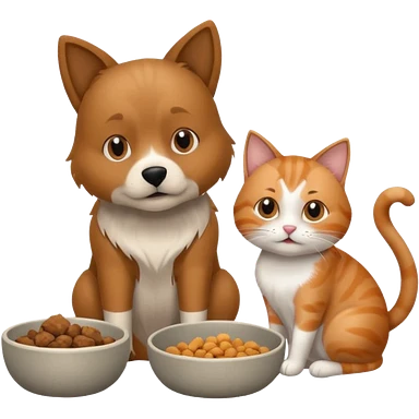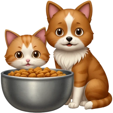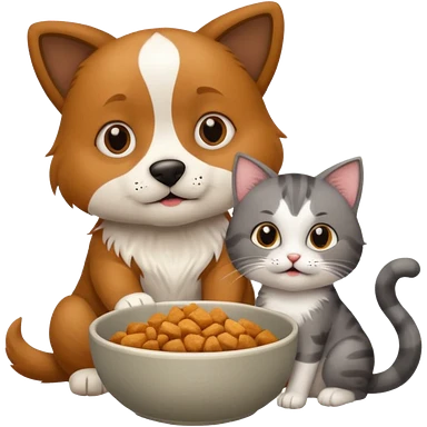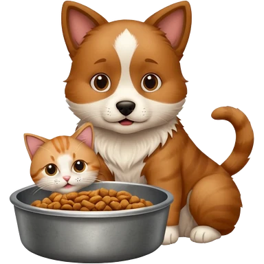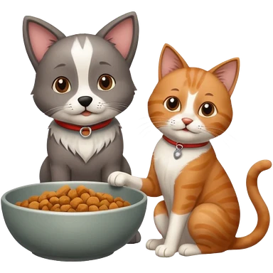 The dog is itching because of fleas, the cat is eating a lot of food from the bowl emoji | AI Emoji Generator