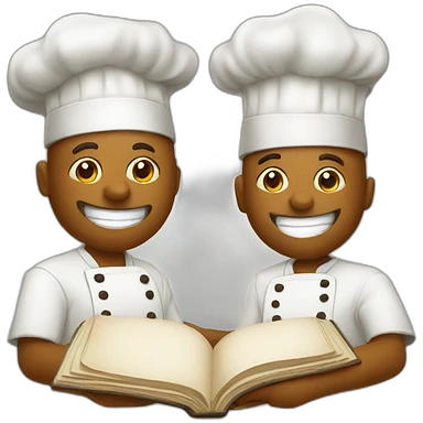 the cook is cooking, vegetables and fruits are flying above him and near him emoji
