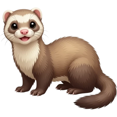 Cinematic Cute Ferret Portrait Emoji, Head tilted playfully, with an elongated, flexible body and a characteristically curious expression, featuring a short, pointed snout, bright, sparkling eyes, and soft fur in warm brown and cream tones, Simplified yet irresistibly adorable features, highly detailed, glowing with a warm, friendly glow, high shine, affectionate and lively, stylized with a touch of whimsical mischief, soft glowing outline, capturing the essence of a fun-loving and mischievous ferret that feels like it could scamper straight into your heart! emoji