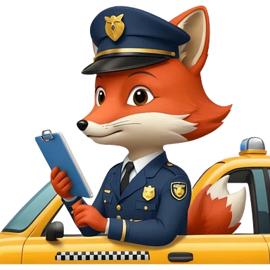 The Fox Is Actually Red Wearing A Officer Outfit Riding On The Taxi Writing On The Clipboard emoji | AI Emoji Generator
