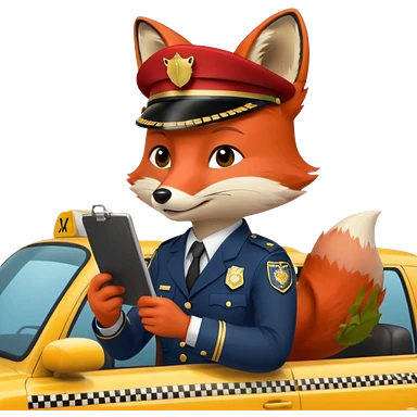 The Fox Is Actually Red Wearing A Officer Outfit Riding On The Taxi Writing On The Clipboard