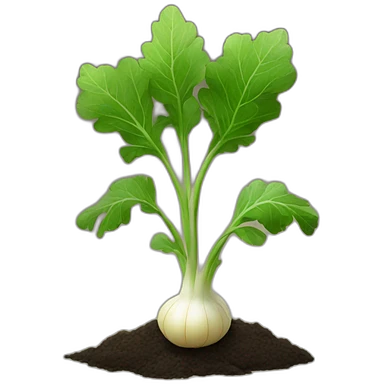 white turnip with slight purple shading with cute smiling baby-like face and leafy stalk and cute spindly roots from the bottom emoji