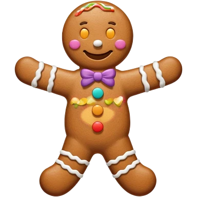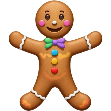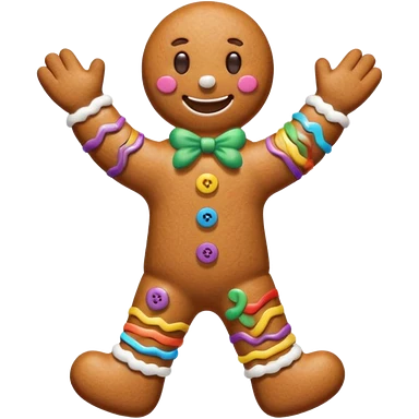 i would like a gingerbread man emoji, it should have colorful buttons, white lines on his arms and legs similar to the gingerbread man character from shrek emoji