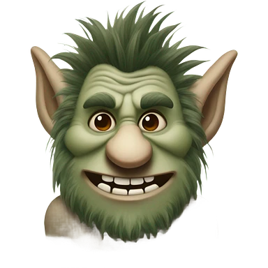 The girl character is a cute and funny troll, the logo is simple. The character has a hat on his head, big ears and pretty red eyes. Her hair is red, lush and round. She is wearing a Karelian sundress. emoji | AI Emoji Generator