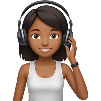 Black girl with headphones vibe , straight hair, white tank top, slight to the side emoji