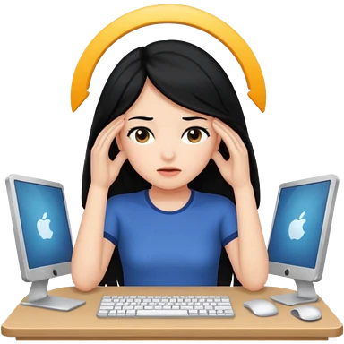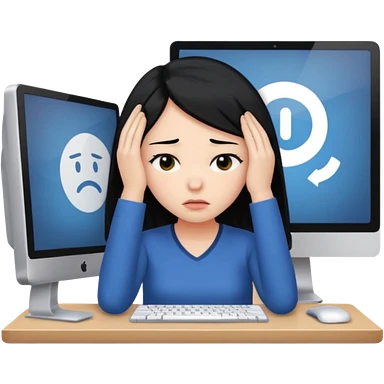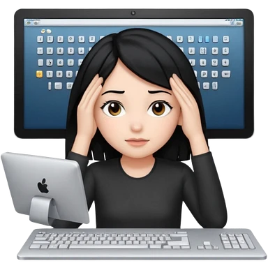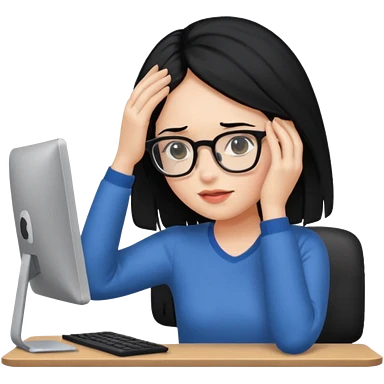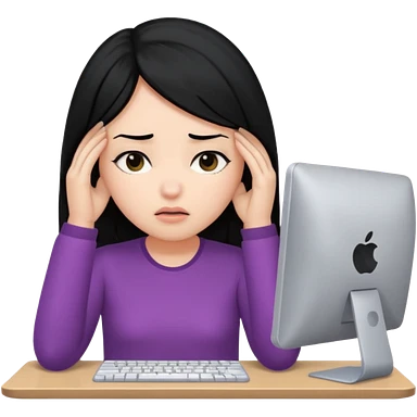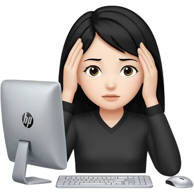 A girl is in front of a computer and is holding her head.The one with black hair emoji