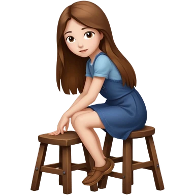 A vector emoji icon of a young girl sitting on a simple wooden stool. She is facing away from the viewer, with her back fully towards us emoji