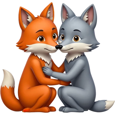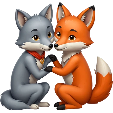 The gray wolf and the red fox embrace each other. emoji | AI Emoji Generator