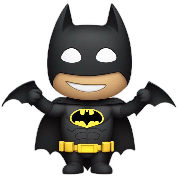 The image depicts a cartoon character dressed as Batman, holding long a blank piece of paper. The background is black. emoji | AI Emoji Generator