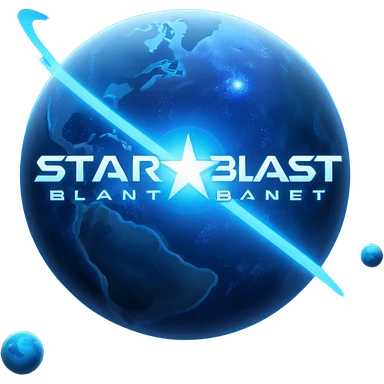 The image is a sci-fi poster with glowing blue text that reads “STAR BLAST.” A bright blue planet or star glows at the bottom, giving the design a futuristic, space-themed look.emoji