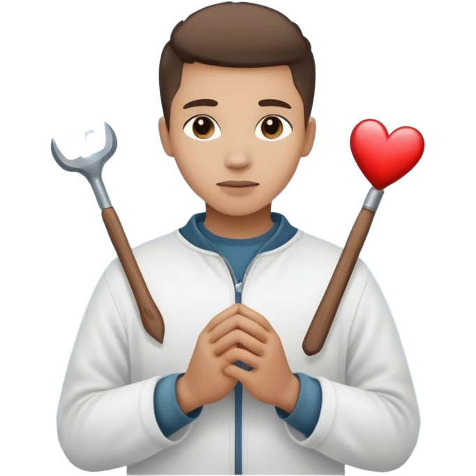 The image shows a person across a fog, emotional tones. In their hands, they carry 2 symbolic tools labeled “Compassion” and “Forgiveness,” suggesting healing after emotional pain-- hearts emoji | AI Emoji Generator