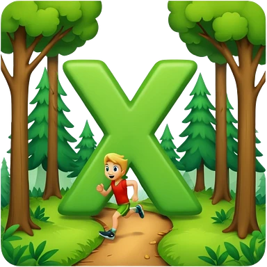 the letter X running around in the woods having an adventure emoji | AI Emoji Generator