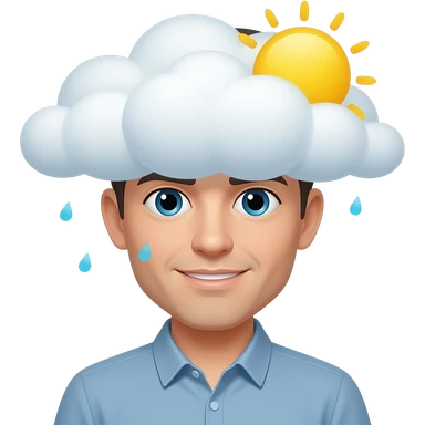 weather emoji combining a smiling sun and a rain cloud, expressing both joy and complexity, classic emoji style, no text emoji