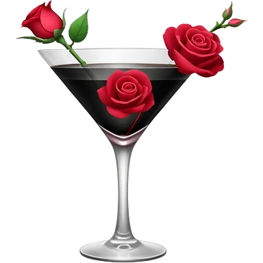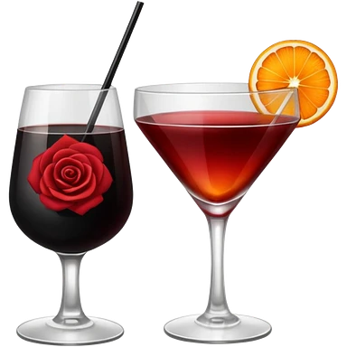🍸+🍹🖤+🌹 (the liquid is black and one glass with black fallen angel wings) emoji | AI Emoji Generator