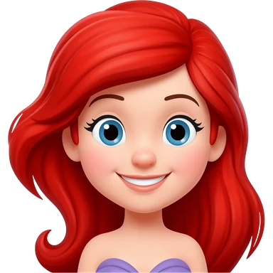 Ariel from Disney's The Little Mermaid, smiling, with flowing red hair, purple seashell top, and green mermaid tail, apple-style emoji art emoji