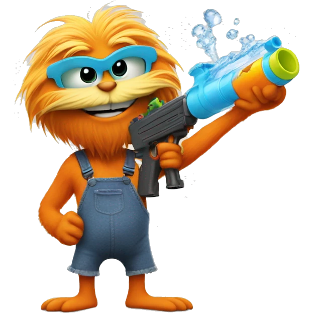 the Lorax holding a Christmas present wearing a Santa hat emoji