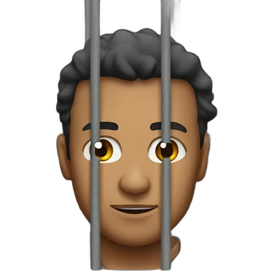head of man in orange jumpsuit behind bars, he's holding the bars emoji