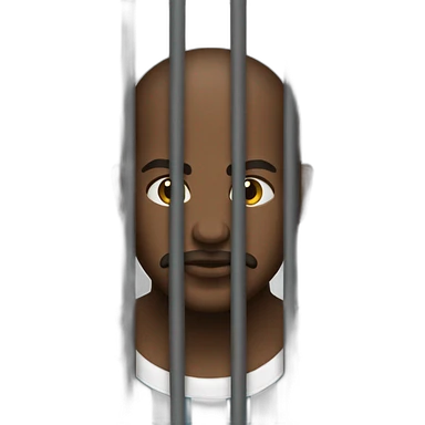 Create an emoji-style image of a gray-haired man in a suit behind jail bars, looking solemn. emoji