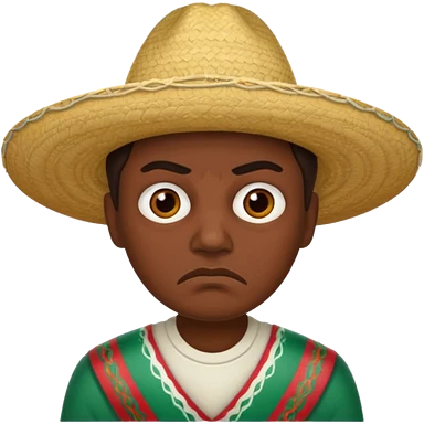 two men standing besides each other. 1 man is white, and the other man is mexican wearing a sombrero and pregnant, holding his belly. emoji