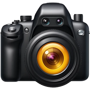 The camera features a solid black body with a shiny lens. emoji