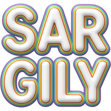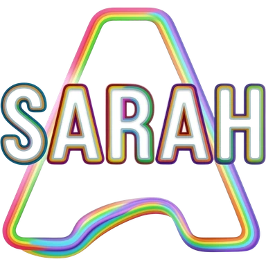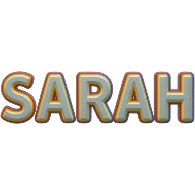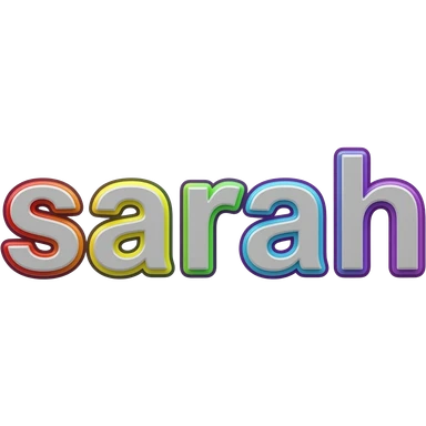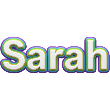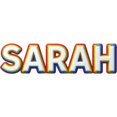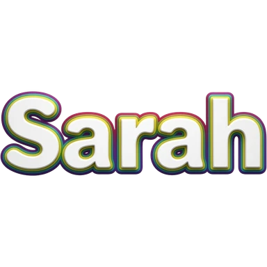 the name "Sarah " in bright crisp white girly typography 3D style lettering, with rainbow colors as a 3d layered outline around each letter, isolated, 3d rendering, no emoji icons no emoji faces and must have no human figures emoji | AI Emoji Generator
