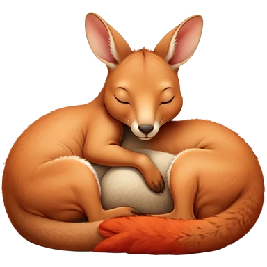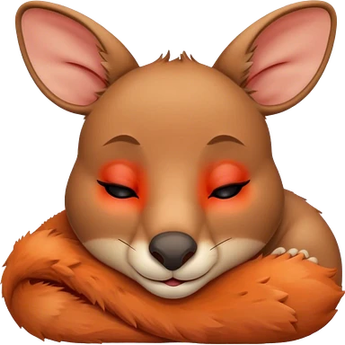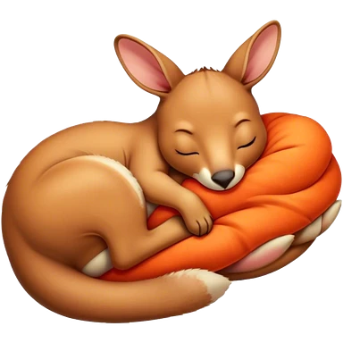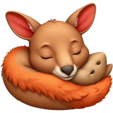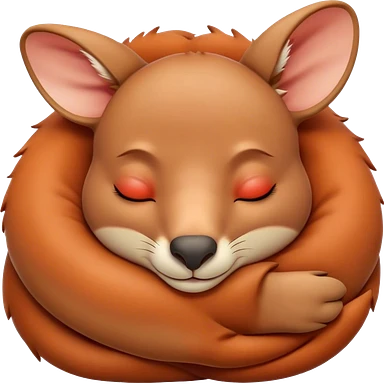 Meme-Worthy Cute Sleeping Kangaroo Portrait Emoji, Head resting peacefully with a contented smile, showcasing a robust build and a luxuriously soft red-orange fur, eyes shut in a serene, restful nap, Simplified yet hilariously adorable features, highly detailed, glowing with a soft, drowsy light, high shine, relaxed and utterly lovable, stylized with an air of playful laziness, bright and heartwarming, soft glowing outline, capturing the essence of a comically sleepy kangaroo, so meme‐worthy it feels like it could instantly become the next viral sensation of adorable slumber! emoji
