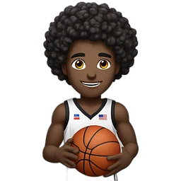 black basketball player holding the notebook wearing black and white jersey curly hair and handband emoji