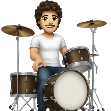 20 year o white boy with fluffy dark brunnette hair playing the drums in a white tshirt emoji