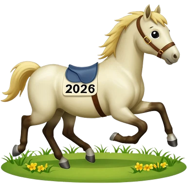 cute horse running on the grass with 2026 year label emoji