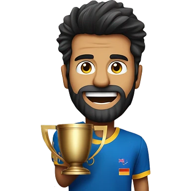 a 21 age old men lifting a world cricker cup with name rithvik and number 1 emoji