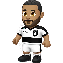 A 3D hyper-realistic male football player wearing a classic Real Madrid home kit, featuring a white jersey with black collar and cuffs, number 7 on the chest and shorts, and the Real Madrid logo. The outfit includes white shorts, white knee-length socks with black stripes, and white football shoes. The background is a smooth green gradient. The player's physique is muscular and athletic, standing in a neutral pose. emoji