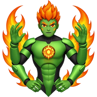 The Omnitrix from Ben 10 with a fiery guy in the middle emoji | AI Emoji Generator