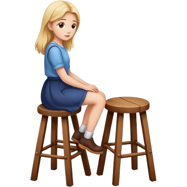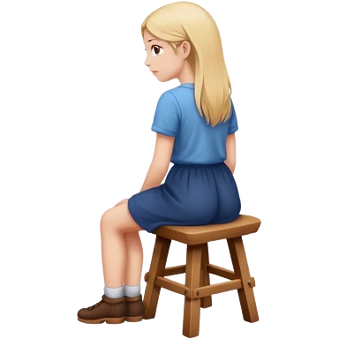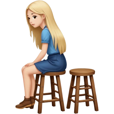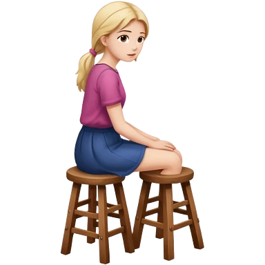 The girl is sitting facing backwards on a stool. emoji
